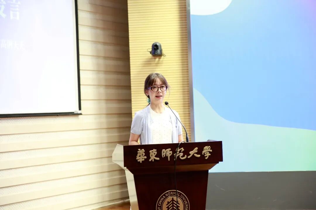 新生代表、英语语言文学专业博士研究生蒋梓文深情回顾了在华东师大硕士三年的美好时光,自拍流出 是一个鼓励尝试、温暖有爱的地方。她说,读博是源于一种“破界”的渴望,突破语言的界限,用多语能力打开新视界;突破文化的界限,用包容心态拥抱差异性;突破思维的界限,用跨学科视角理解世界。