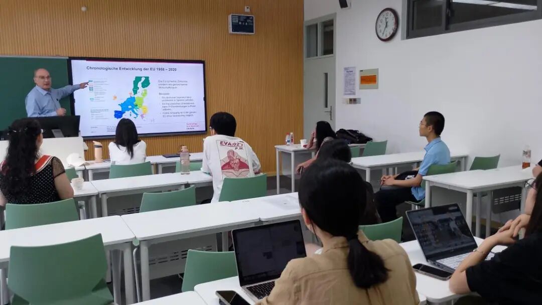 讲座结束后,德语系学生与两位专家进行积极互动,现场气氛热烈。本次学术讲座为师生搭建国际学术对话平台,助力理解中欧经贸与跨文化协作,对相关领域研究及人才培养具有重要意义。