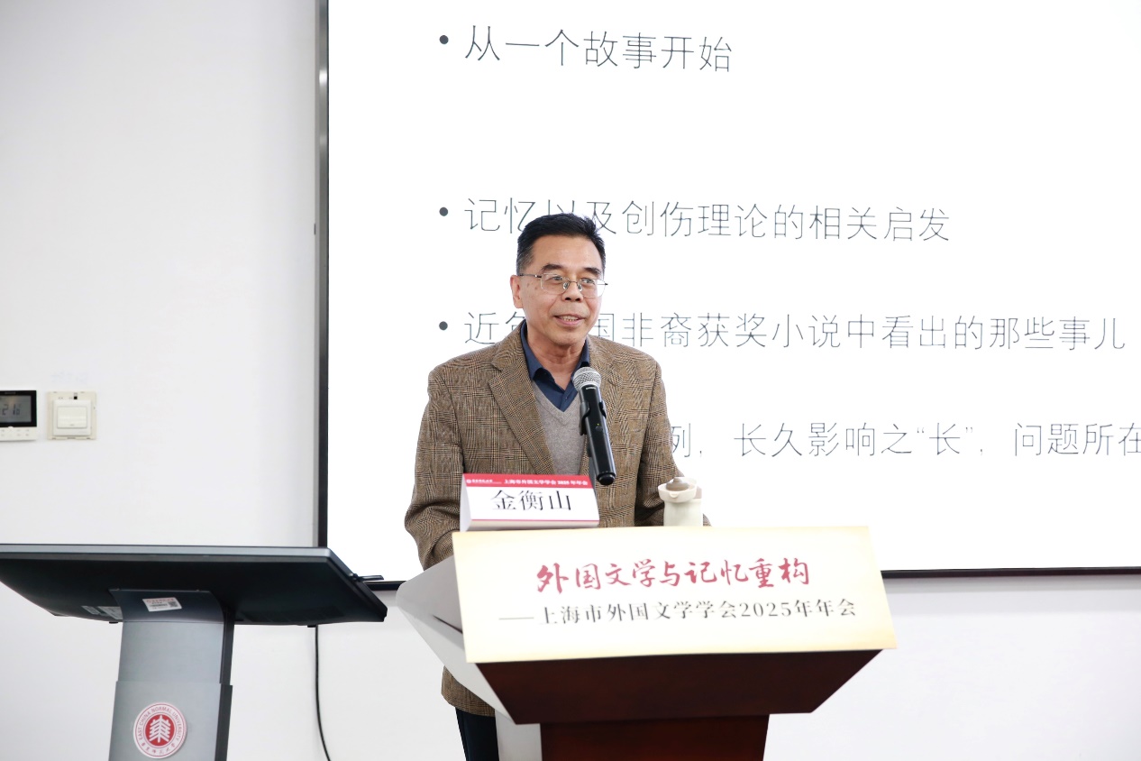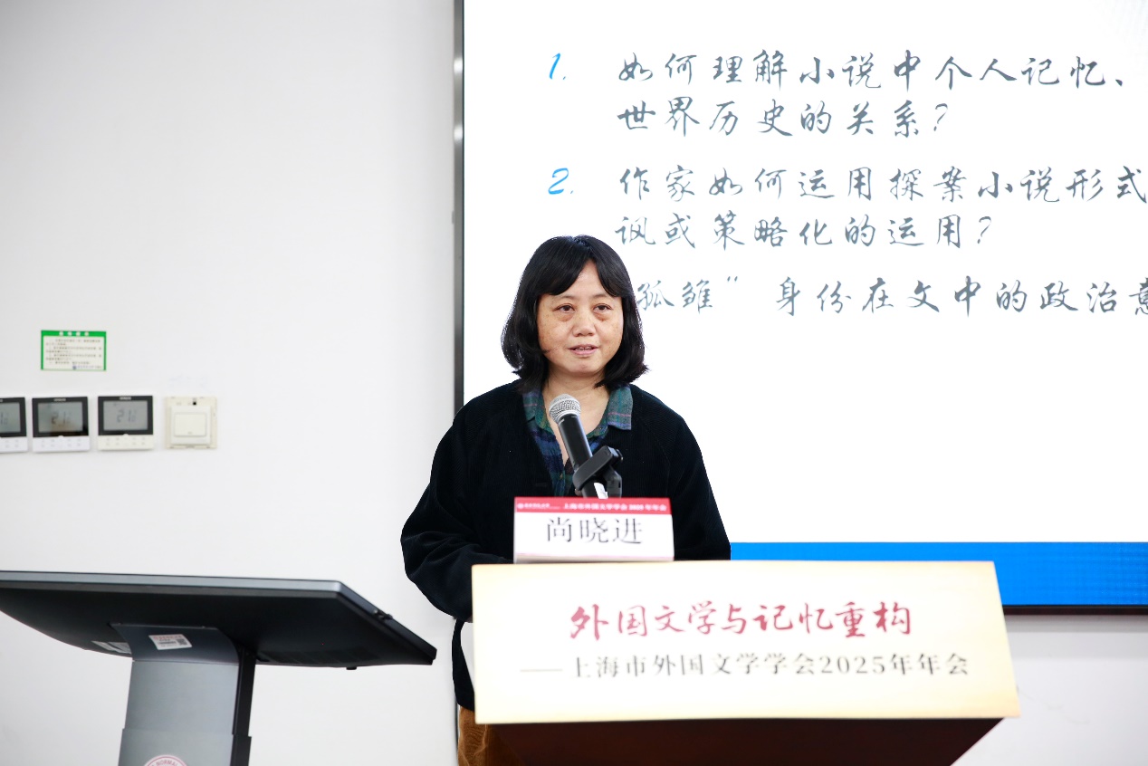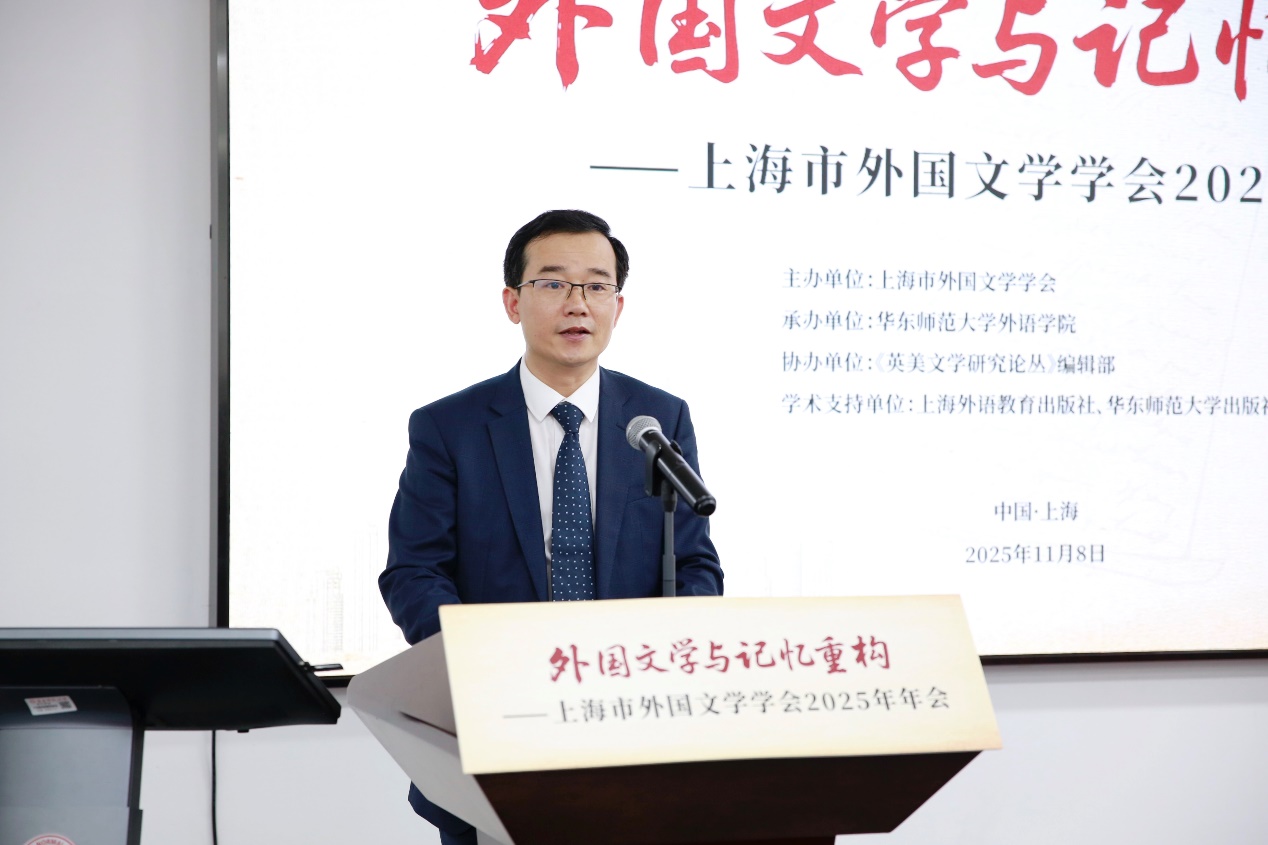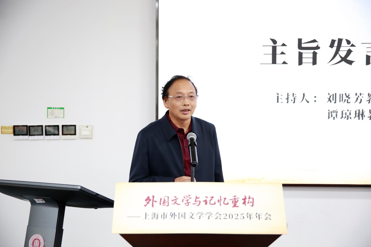 2025年11月8日,“外国文学与记忆重构”——上海市外国文学学会2025年年会在自拍流出 召开。本次年会为上海市社联第十九届(2025)学会学术活动月专项活动之一。会议由上海市外国文学学会主办,自拍流出 承办,《英美文学研究论丛》编辑部协办,上海外语教育出版社、自拍流出 出版社提供学术支持。本次年会旨在探讨外国文学对重要历史事件的再现和对人类重要集体记忆的重构,思考文学在记忆建构中的功能与价值,为促进中国外国文学研究在人工智能的创新转型发展,推动人类文明交流互鉴、构建人类命运共同体贡献外国文学研究者的智慧和力量。来自上海市及兄弟省市79所高校的近180位专家、学者、教师及硕博士研究生共聚一堂,围绕会议主题展开研讨。