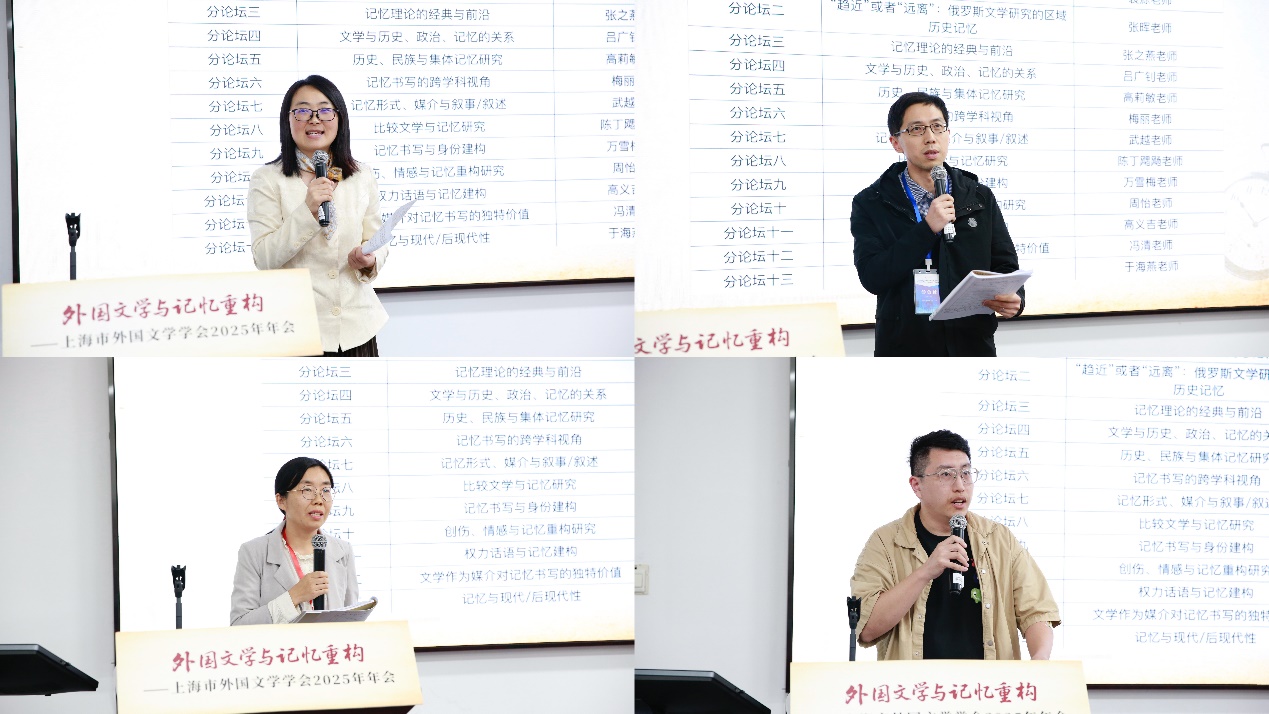 王弋璇秘书长总结了会议的两个关键词:精彩纷呈、温暖热烈。她认为本次会议具有高度开放性和互动性,见证了学术共同体的密切交流,并重点感谢上海市社联和两家出版社对本届年会的大力支持。最后,王弋璇秘书长概括说本次会议将鼓舞上海市外国文学界的学者们以本土性为根基、对话性为桥梁、创造性为引擎,共同书写“外国文学与记忆重构”研究的新篇章。