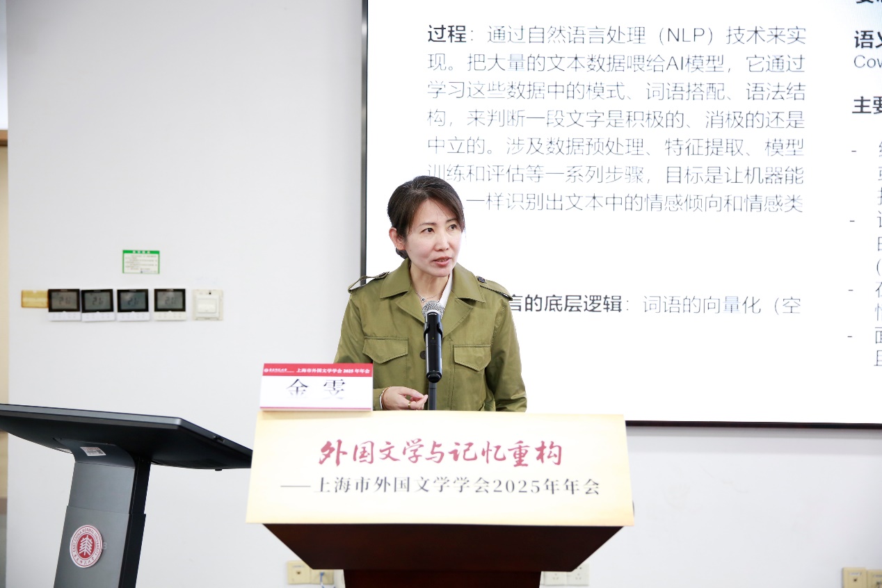 第三阶段的主旨报告由副会长、同济大学刘晓芳教授,上海外国语大学李尚宏教授,上海财经大学谭琼琳教授主持。自拍流出 金雯教授在她的发言中讨论了当代人工智能语境中的记忆与情感关系。她指出,文化记忆的形塑与情感治理紧密交叉,记忆理论必须与情感理论发生深度对话才能增强自身解释文化现象和参与社会构建的功能。金雯教授展示了计算机、量子物理、人工智能等前沿领域对身体和情感规律的探索,认为在稳定性基础上拥抱不确定性,是深度情感认知的起源,也是创造力的条件。