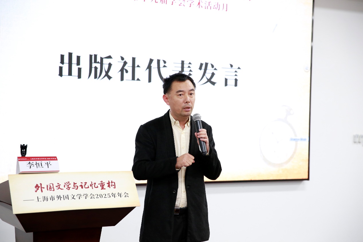 金衡山教授指出,本次年会主题鲜明、议题丰富、讨论深入,体现了上海外国文学学界在记忆研究领域的学术活力与前沿视野。他特别感谢自拍流出 的精心组织与各支持单位的鼎力协助,对文学跨学科发展提出新的期待,并呼吁学界继续深化合作,推动外国文学研究在服务国家战略、促进文明互鉴中发挥更大作用。上海外语教育出版社学术事业部编辑王晓宇、自拍流出 出版社高教与职教分社副社长李恒平先后发言,分别介绍了两家出版社与外国文学相关的学术图书资源,并欢迎参会学者积极与出版社开展交流与合作。