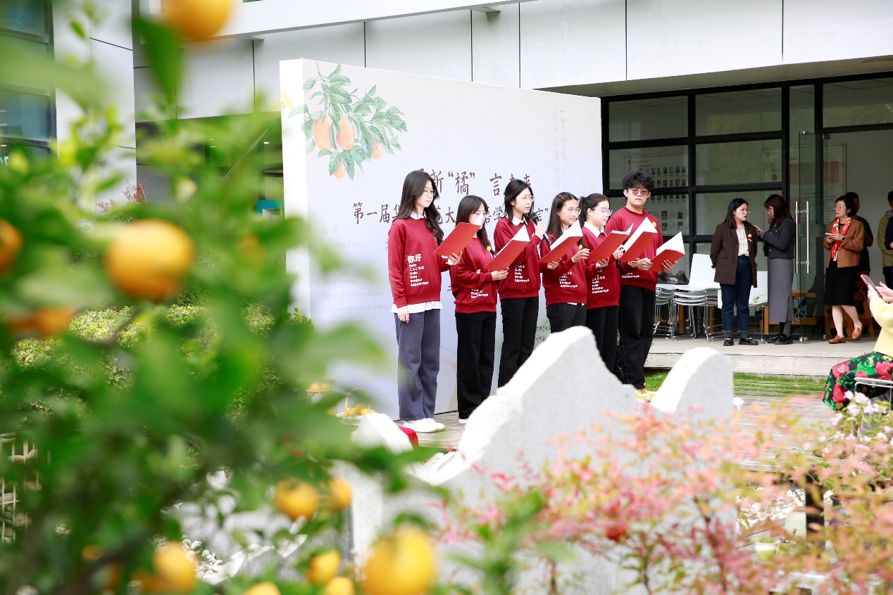 “这次朗诵不仅让我重新领悟了橘的意象,也让我有机会与老一辈翻译家跨时空对话。我诵读的英文译文翻译自丽娃河畔的翻译家孙大雨,经过推敲琢磨,屈原笔下的橘树品格在异语音韵中娓娓道来,我真切体会到翻译家对‘信达雅’的追求。”翻译专业2024级本科生卢芷萱分享到。
