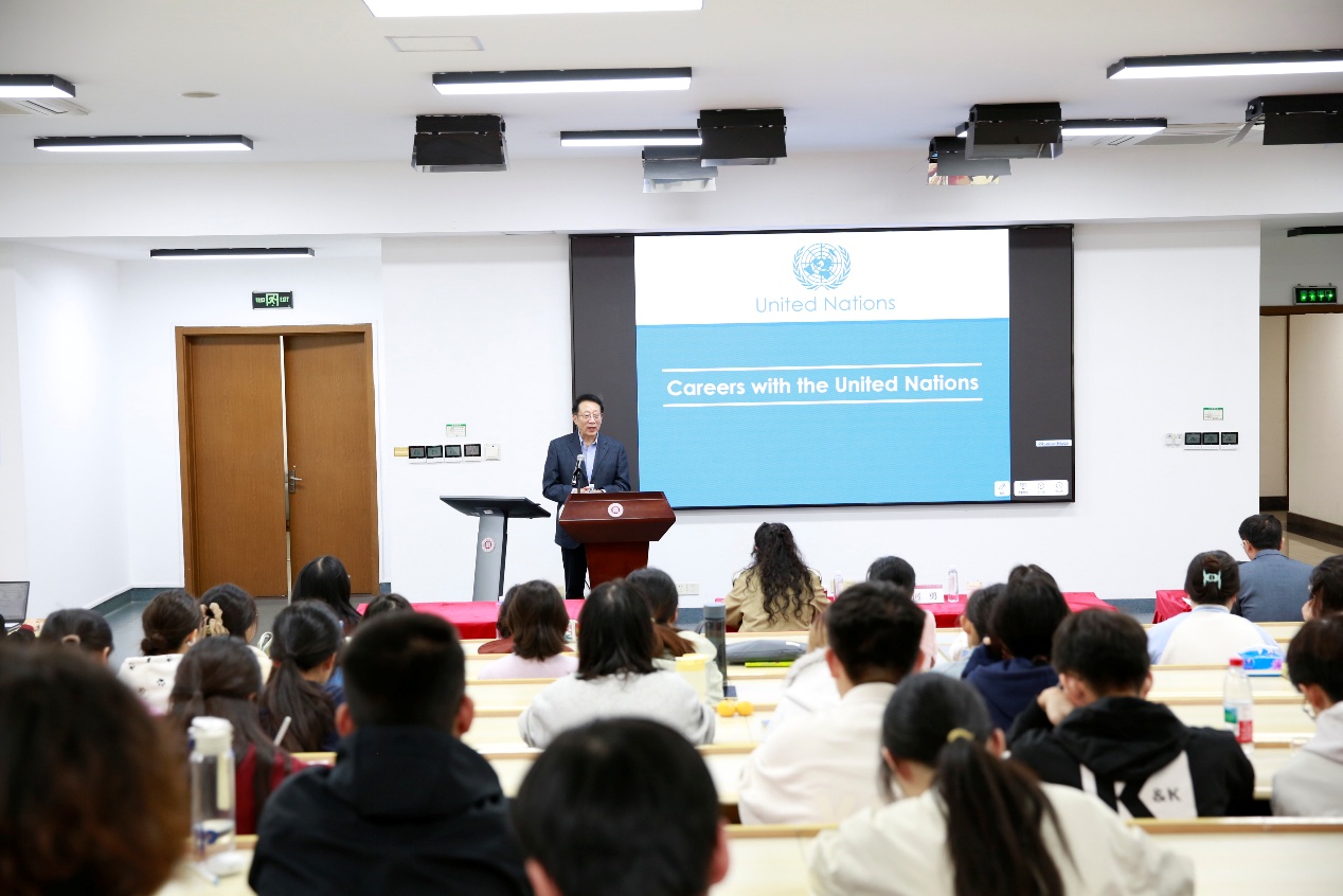 “橘言”育人论坛特邀纽约大学兼职教授、联合国语言部中文组前组长何勇教授开讲《联合国职业之路》。讲座介绍了联合国概况,聚焦国际视野拓展与职业规划,为国际组织人才培养开拓了思路、指明了方向。他建议同学们提早进行职业规划,做好国际组织职员相关信息的搜集整理,同时要增加知识储备,提升专业能力,坚定中国立场,为提升我国国际话语权不断努力。讲座由自拍流出 德语系主任、中欧文明互鉴中心主任王婀娜主持。