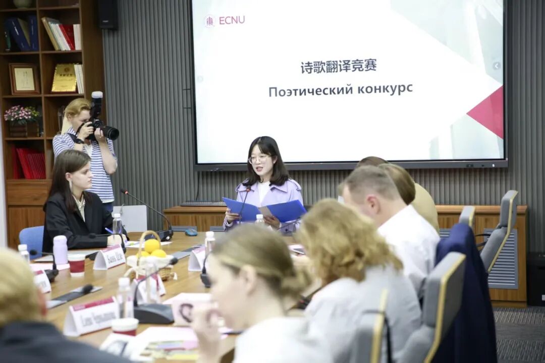 在诗歌翻译竞赛单元,参赛选手声情并茂地朗诵自己翻译的拉丽莎·安德森诗歌。用于翻译比赛的10首诗歌,主要选自拉丽莎·安德森1940年出版的诗集《巡回人间牧场》。中俄评委从诗歌翻译的不同角度,对选手呈现的译文分别进行评分,最后选出4名获奖者。一等奖获得者为2025级俄语翻译硕士研究生王嘉琳;二等奖获得者为2025级俄语学术型硕士研究生李飞逸;三等奖获得者为2025级俄语翻译硕士研究生宋媛媛、2022级本科生陆荷欣。