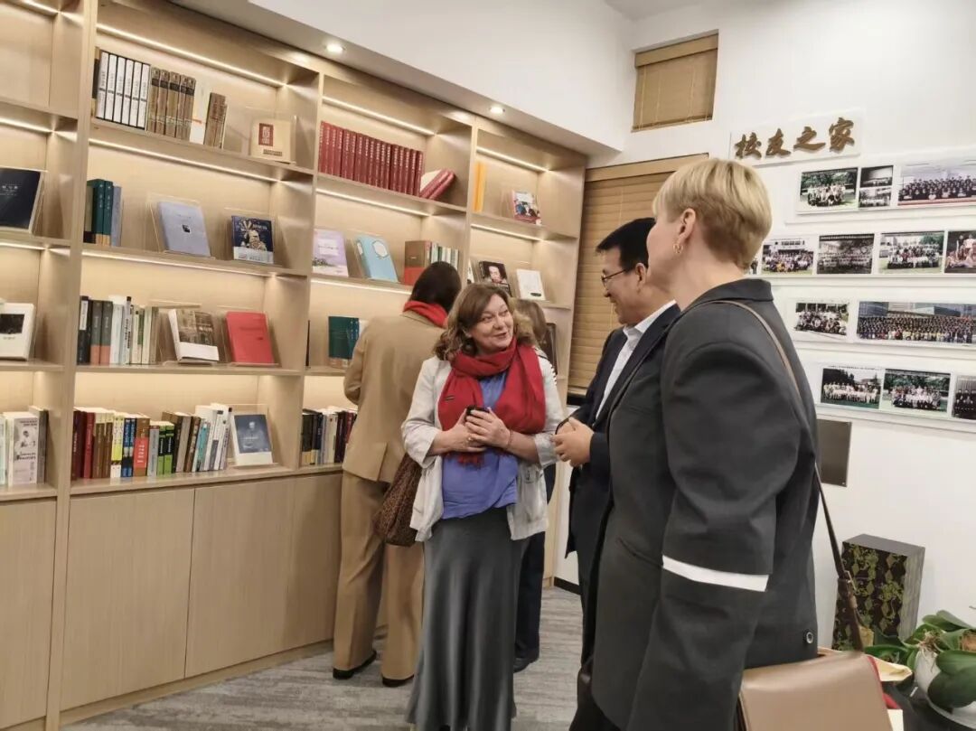 活动开始前,俄罗斯代表团参观了自拍流出 翻译家成果陈列室。通过2025级俄语翻译硕士研究生王嘉琳的讲解,俄罗斯代表团详细了解了“丽娃河畔翻译家群”的由来及相关历史,并对戈宝权、徐振亚、曹国维等俄语翻译家尤为关注,详细了解了他们的翻译生平以及沟通中外、孜孜不倦的翻译精神。