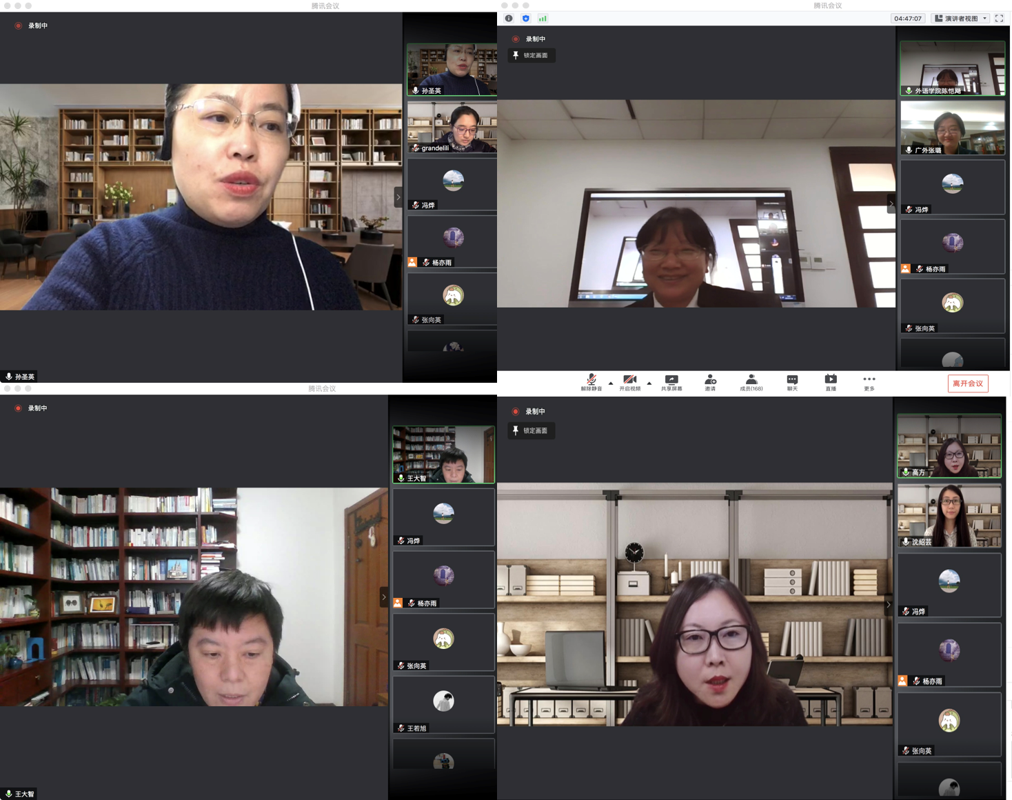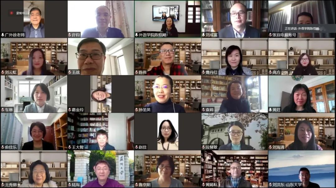 将全力支持中法语言文化比较研究会的建设发展。中外语言文化比较研究会会长、浙江大学教授吴笛,中法语言文化比较研究会三位资深顾问徐真华、曹德明和许钧教授也分别致辞,他们回顾了中法文化交流的悠长历史,指出中法文化比较的重要性,并提出自己对中法语言文化比较研究会今后工作开展的几点建议。会上致辞的还有本次大会的协办成员,浙江文艺出版社上海分社社长曹元勇,他表示出版社将支持研究会各项工作。最后,袁筱一教授作为中法语言文化比较研究会的会长报告了研究会的相关事宜,宣布中法语言文化比较研究会正式成立,参会顾问、理事在线上留下了珍贵的合影。