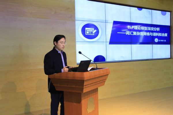 第二场讲座,由张浩敏和周刚介绍English Language Proficiency (ELP)项目的理论框架,实践意义,基础研究,以及未来研究策略和愿景,强调了在大数据时代,运用智能化平台学习外语的机遇和必要性,并且指出ELP的特点和创新能有效地促进外语阅读教学与测试的动态发展。