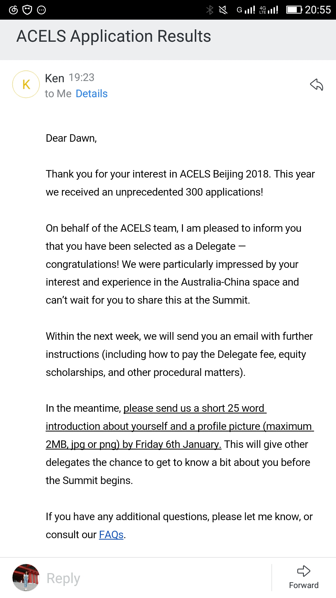 另据刚收到的消息,我中心研究生陈曦在300名申请者中脱颖而出,成功入选2018年中澳青年联合会(ACYA)2018年中澳青年领袖发展峰会(ACELS),将代表自拍流出 澳大利亚研究中心参加本次旨在促进中澳青年杰出人才交流合作的重要活动。