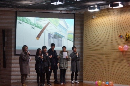 游戏结束后由大一的几位同学带来了动漫配音节目《男子高校生的日常》,别看是大一的学妹学弟们,日语发音却非常自然,而且贴近动漫原声,不禁让人觉得真的有做声优的潜质啊。特别是几位女生的反串表现的异常精彩,日语系虽然男生确实不多,但是都是巾帼不让须眉的好女子!