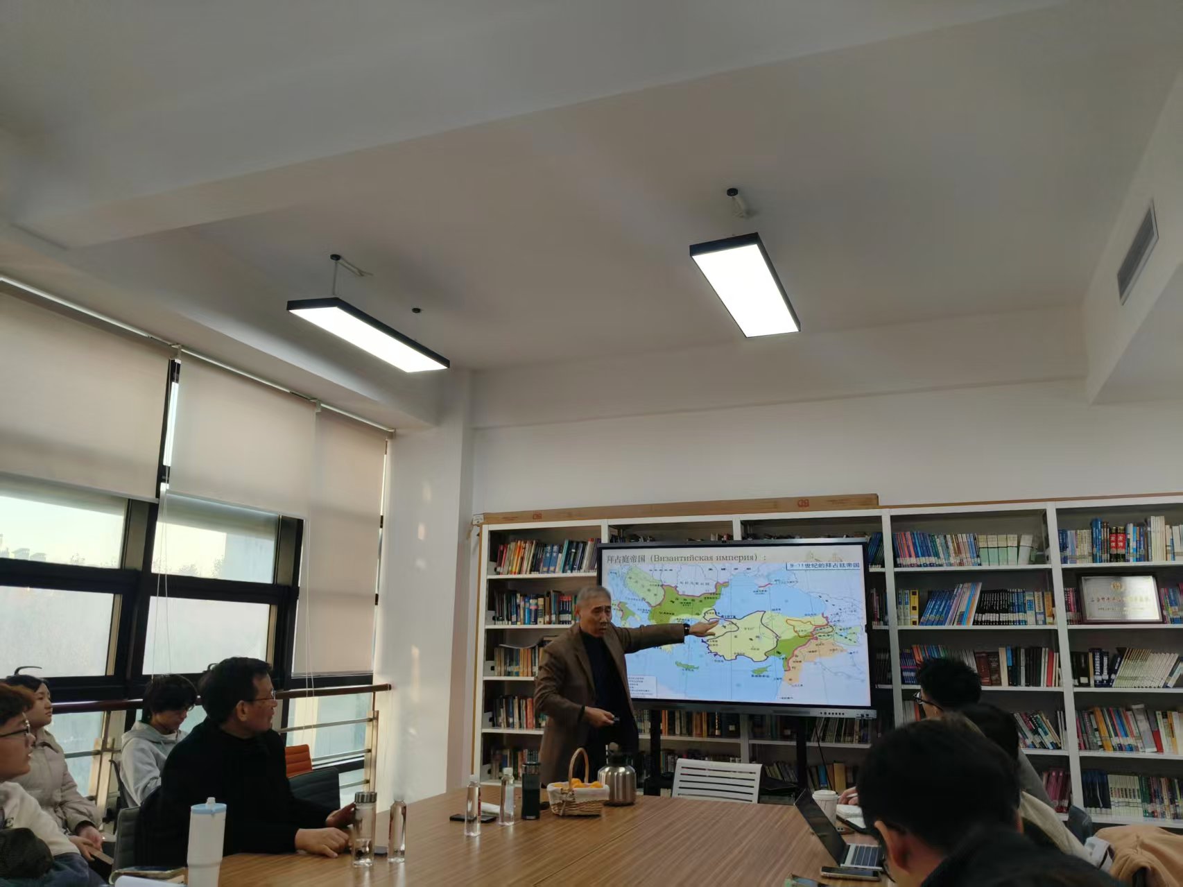 随后的互动环节气氛热烈,同学们结合自身近期的学习内容争相提问。问题涵盖古罗斯历史分期的学术争议、古俄语文献翻译中的具体难点以及古罗斯与希腊文化互鉴的具体细节等多个层面。王教授以其渊博的学识和丰富的经验,对每个问题都给予了细致、深入且富有启发性的解答,其平易近人的学者风范和严谨求实的治学精神深深感染了在场师生。