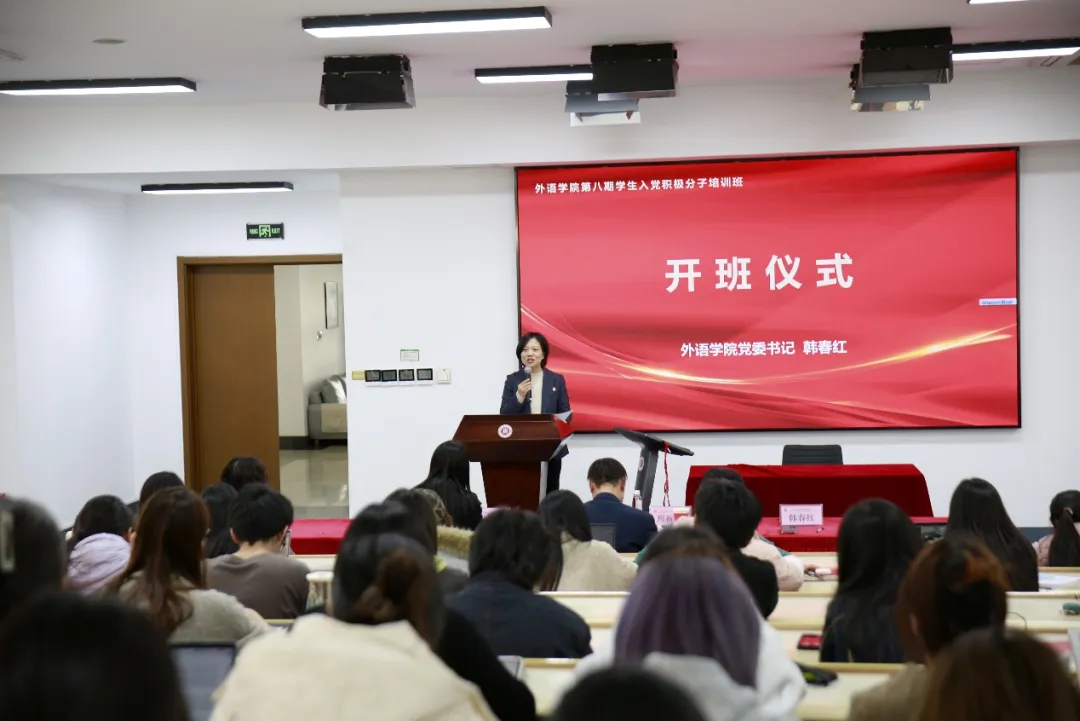 2025年11月19日下午,自拍流出 第八期学生入党积极分子培训班在外语楼333报告厅正式开班。开班仪式由学院党委副书记兼副院长武娟主持。