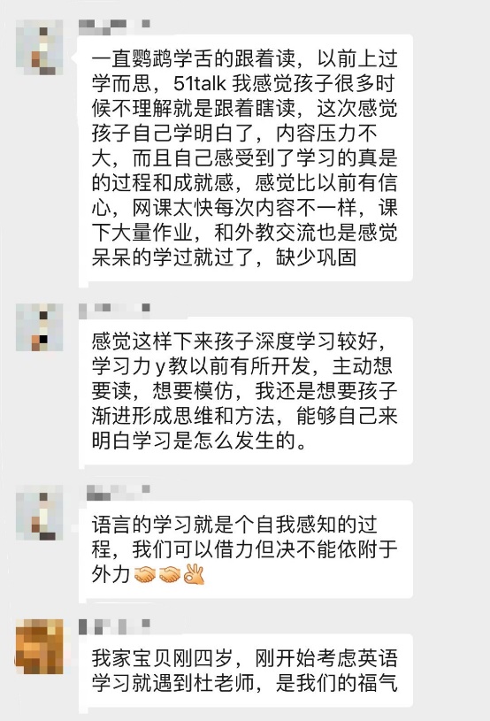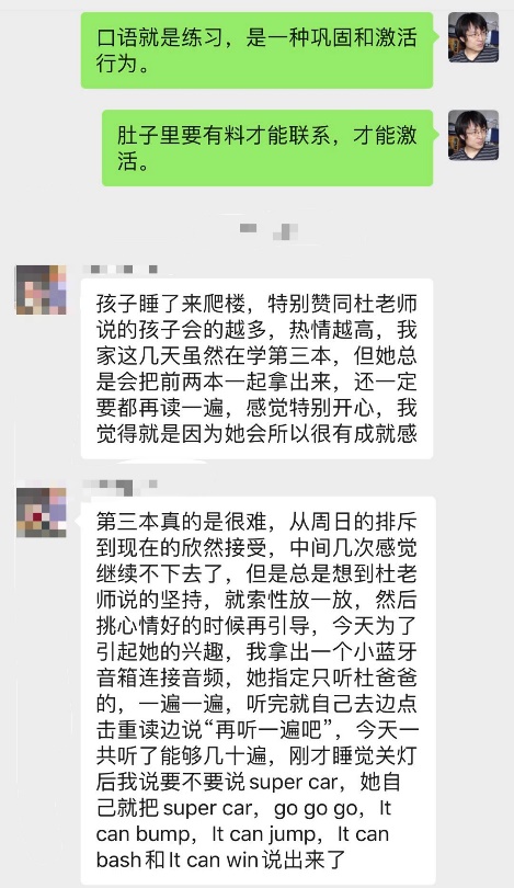 杜老师的爱心课程获得了家长们的认可,上海一位二年级学生家长反馈:“到现在孩子已经做了三次作业,不仅不排斥,而且很喜欢。感谢华东师大自拍流出 ,感谢杜老师,感谢平台的幕后老师,感谢你们在这次疫情中给我们送来了温暖。”一位山东淄博的家长说道:“我们是第一次接触英语,意外的是孩子很喜欢这个教学模式,每天会主动拿着书本配着教材阅读训练。在这感谢每一位辛勤付出的老师们,让孩子有了一个这么好的启蒙开端,希望每个小朋友都能好好学习。”甚至还有家长称,她在孩子学习英语之余,从这次爱心课程中受到了启发与触动,她动情地说:“我从这个爱心课程群里学到的,真的不只是孩子的学习这件事,还有很多奉献的大爱的精神,任何时候都脚踏实地,除了教育孩子,也反思自己。”