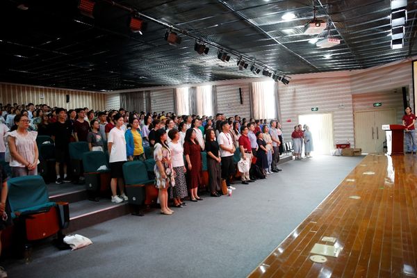 教师代表、翻译系主任赵刚在致辞中祝贺同学们成为一名光荣的ECNUer,他向新生表达三点期望,一是要努力学好外语,为中国文化走出去,为提高中华民族的软实力不懈努力。二是在技术高度发展的今天,能够破除成见,放弃悲观,拥抱技术,让技术服务于我们的目标。三是能保持质疑的精神、批判的精神、逻辑思维的精神。