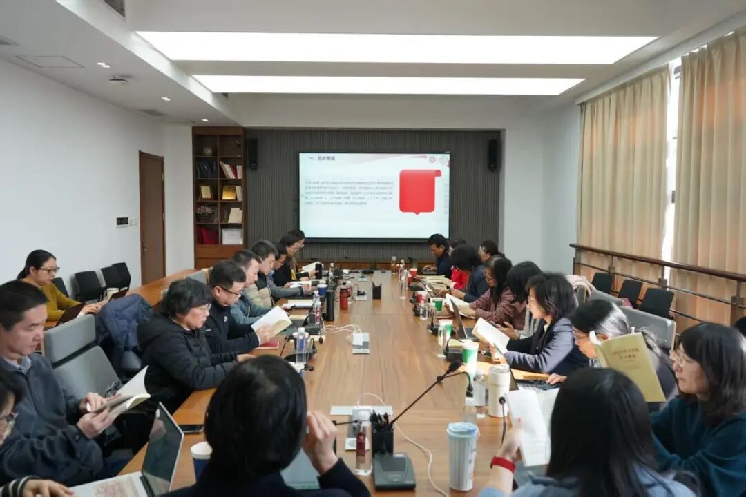 会议落实“第一议题”学习要求,首先聚焦《习近平外交思想学习纲要(2025年版)》开展集中学习与交流研讨。院长助理王婀娜教授围绕习近平外交思想的时代背景、深刻内涵、重要意义进行领学,深入解读了构建人类命运共同体的相关论述,梳理了习近平外交思想对外语学科发展的重要指导意义。