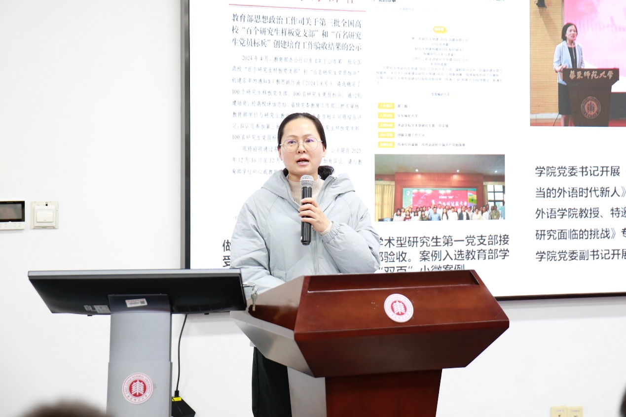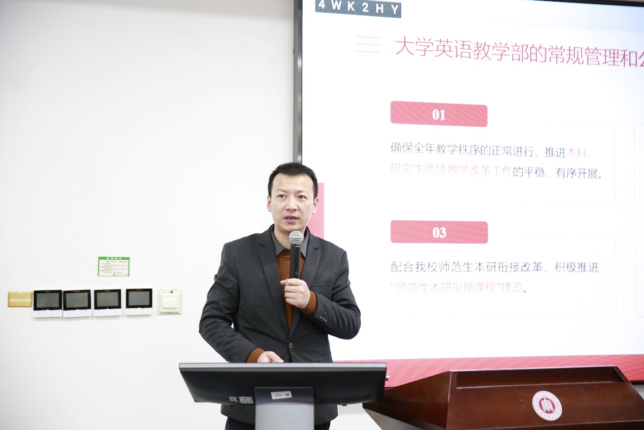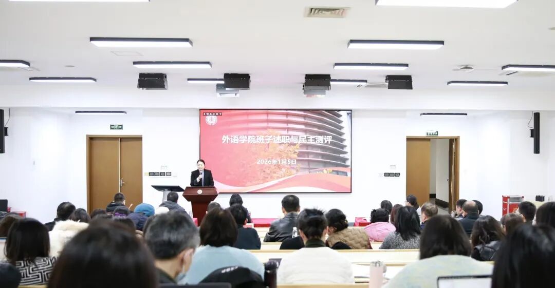 党委书记韩春红以“凝心聚力、众志成城”为题作年度工作述职。她在报告中提到,2025年,学院党委深入学习贯彻习近平新时代中国特色社会主义思想,坚持以高质量党建引领高质量发展,全面实施TRANS Plan(跨·越)计划,推动学院各项工作提质增效,高质量完成了年度既定目标任务,为科学谋划“十五五”奠定了坚实基础。在过去一年中,学院党委持续强化理论武装,将学习成效切实转化为推动改革发展的持续动力;不断完善集体领导、协调高效的班子工作机制,确保党组织领导作用充分发挥;着力夯实基层组织,锻造党员先锋队伍,持续筑牢坚强战斗堡垒;坚持以文化人,以文育人,广泛凝聚“以院为荣”的共识,充分激发全院师生干事创业的内生动力。韩春红表示,2026年是“十五五”规划的开局之年,希望全院师生继续凝心聚力、众志成城,以攻坚行动破解发展瓶颈,以创新思维激活发展动能,在“十五五”开局之年奋力谱写外语学科高质量创新发展新篇章。
