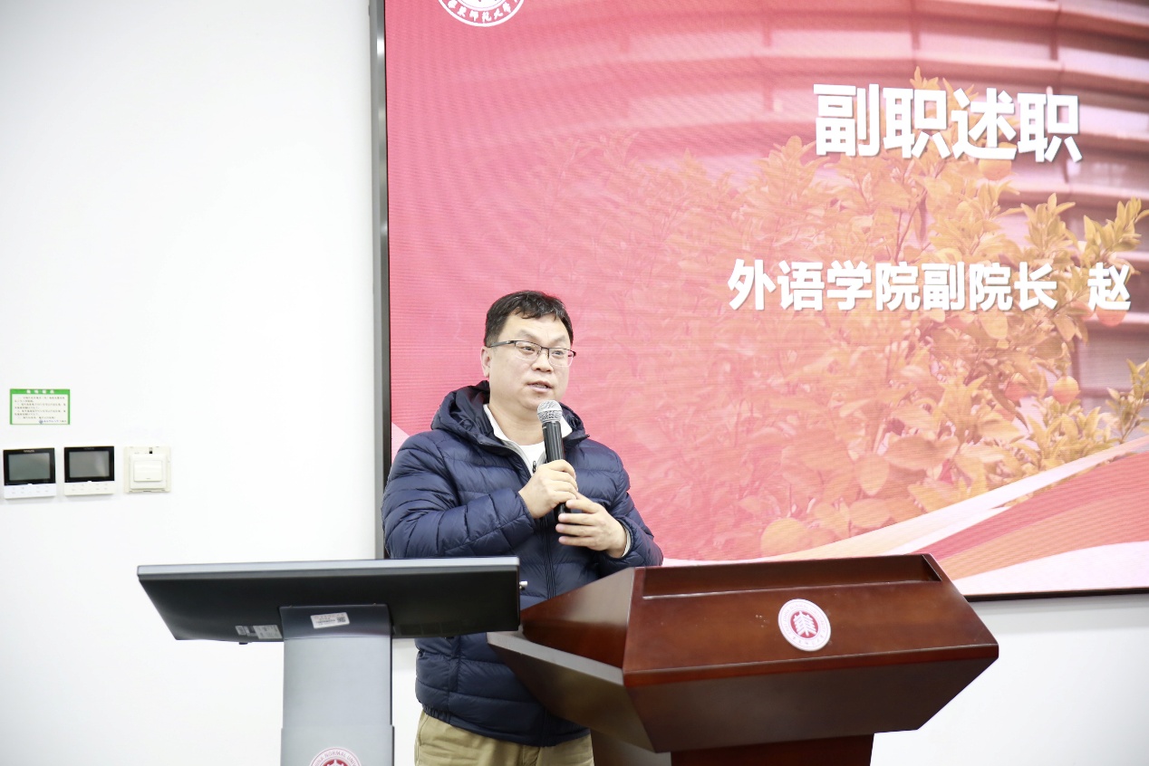 随后,韩春红主持学院副职的述职环节。副院长王静、副院长赵朝永、副院长赵刚、党委副书记兼副院长武娟依次就各分管领域作年度工作述职。