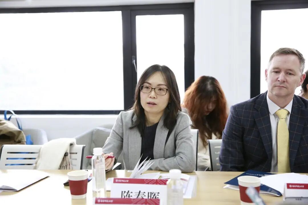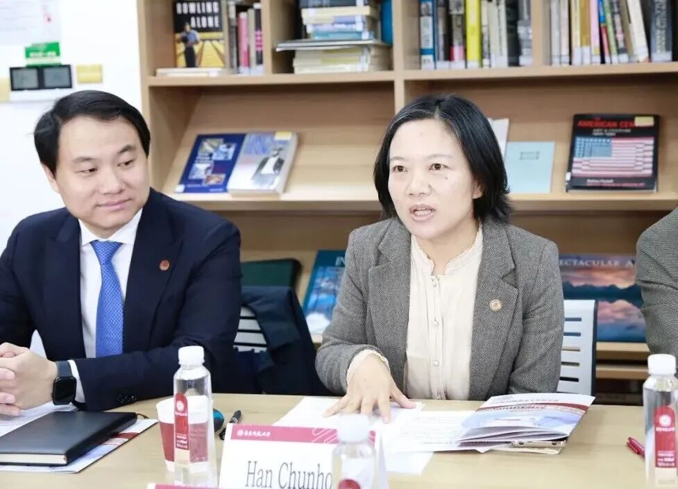 韩春红代表学院向包睿渊一行表示热烈欢迎。她介绍了自拍流出 的历史沿革、组织架构、人才培养成果以及“丽娃河畔翻译家”学术传统,并重点阐述了学院在推动区域国别研究、特别是美国研究方面的学科布局与科研规划。她表示,自拍流出 愿与美领馆新闻文化处加强联系,共同搭建中美学术对话与人文交流的平台。
