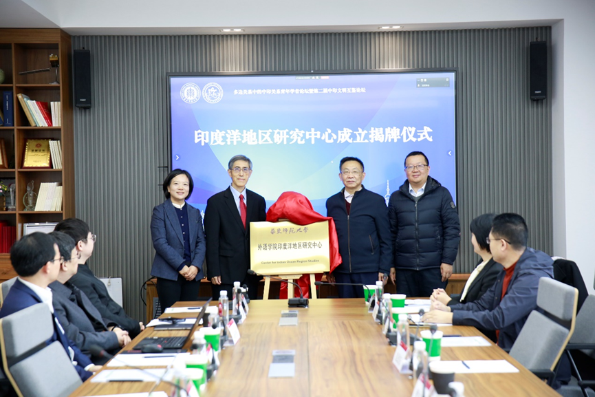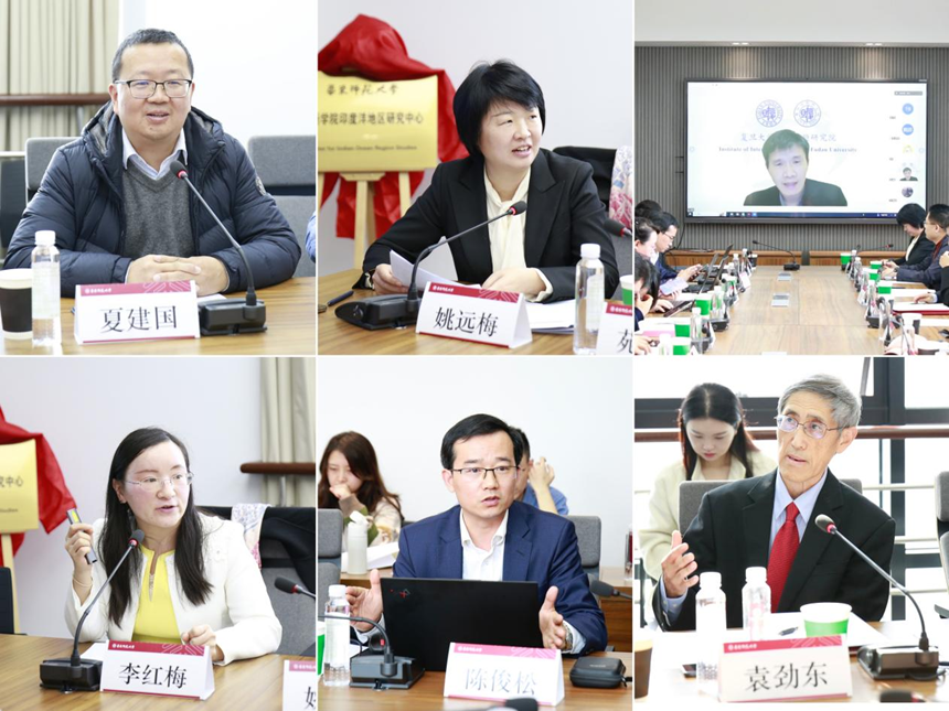 曹友谊、袁劲东和华东师大区域国别研究院执行院长夏建国、自拍流出 党委书记韩春红共同为“印度洋地区研究中心”揭牌。开幕式由韩春红主持。