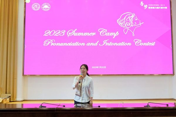 大赛分为读单词挑战(Words Reading)、绕口令挑战(Tongue Twister)、英语配音(Movie Dubbing)三个环节,语言能力提升夏令营营员被分为两组参赛。比赛中,学生英语口语表达流利,表现自信大方,让在场观众留下了深刻的印象。在配音比赛环节,两组选手演绎了《功夫熊猫》的经典片段,发音标准、语音流畅、表演生动、感情充沛,生动还原剧情,现场掌声不断。