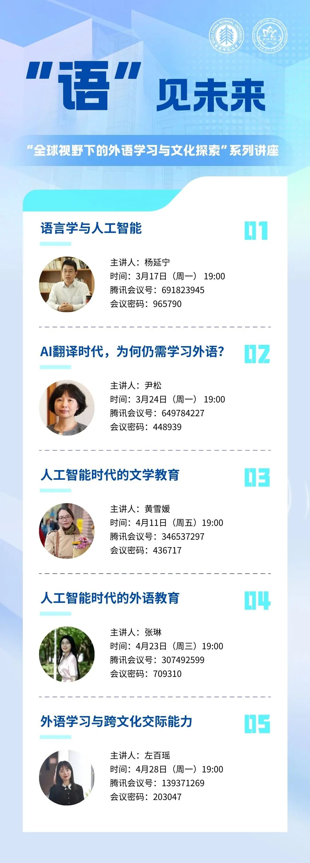 4月23日晚,“语”见未来——全球视野下的外语学习与文化探索系列讲座2025年第四讲在腾讯会议上如期举行。英语系张琳副教授应邀围绕“人工智能时代的外语教育”展开讲座。来自全国各地的中学生及北京大学、武汉大学、山东大学、河南大学等高校师生100余人在线聆听了本场讲座。