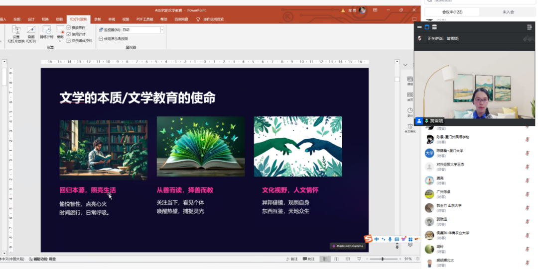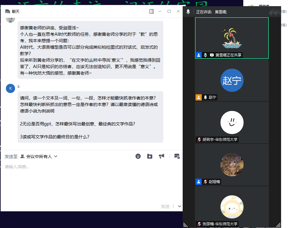 4月11日晚,“语”见未来——全球视野下的外语学习与文化探索系列讲座2025年第三场在腾讯会议上如期举行。德语系黄雪媛副教授应邀围绕“人工智能时代的文学教育”展开讲座。来自南京外国语学校、厦门外国语学校等学校的高中学生及南京大学、山东大学、厦门大学等高校师生近200余人在线聆听了本场讲座。讲座由华东师大自拍流出 人才培养办公室主任赵宁主持。