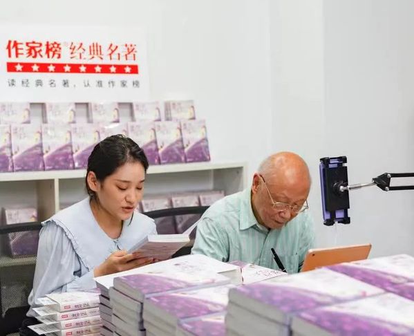 何敬业坦言,他一开始只是抱着试试看的想法坐到镜头前,没有想到会取得如此优秀的效果。手机屏幕上密密麻麻的弹幕不断涌入,面对天南地北的读者发来的问题,即便年事已高看不清字,何敬业仍旧耐心地请工作人员帮忙记录整理,花费整整三个小时解答读者疑问。“在作家榜直播间和读者互动,拉近名著和读者的距离,我还遇见了自己教过的学生,感到很亲切。这是坐在书斋里,完全体验不到的。全国各地的读者不需要舟车劳顿,就可以便捷高效收到心仪的好书,在线实时沟通,我自己很满意。”