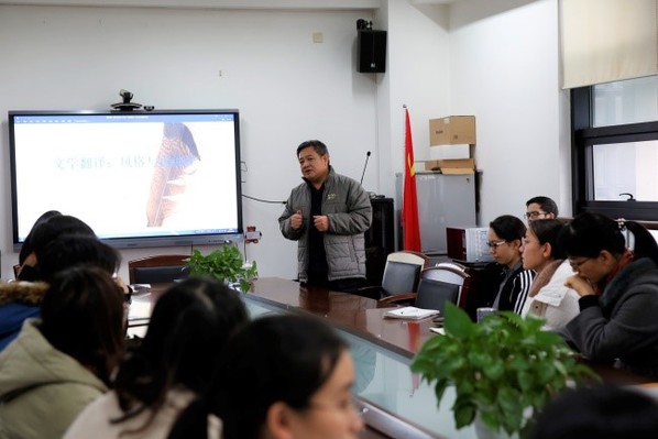319会议室举办了题为“文学翻译与再创作”的学术讲座。讲座由俄语系教师巴禹心老师主持,黑龙江大学高翻学院副院长、黑龙江大学俄语学院白文昌教授主讲。白文昌教授在文学翻译领域有着丰富的经验与独特的见解。同学们认真聆听教授的讲解,并积极互动,收获颇丰。