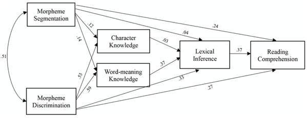 Zhang, H., Zhang, X., Li, M., & Zhang, Y. (2021). Morphological awareness in L2 Chinese reading comprehension: Testing of mediating routes. Frontiers in psychology, 12, 736933. DOI: //doi.org/10.3389/fpsyg.2021.736933