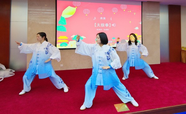 张锷、王亚民、张峰辉三位老师的太极拳表演英姿飒爽,