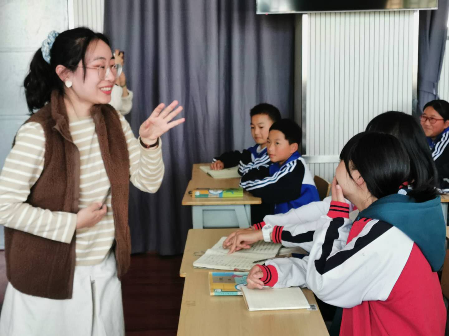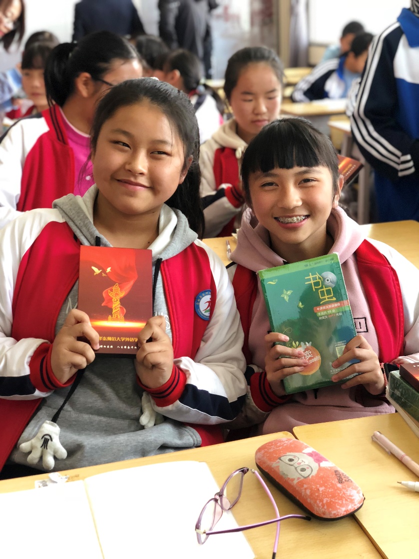 现场教学活动中,志愿者王彤、何琰为当地中学生开启了一段妙趣横生的寻声之旅。通过精心设计的教学环节传授英语音标基础知识。课堂上,学生反响热烈,踊跃发言,现场气氛活跃。课后,志愿者还为每位参与课程的学生进行了语音测试存档,将作为后期教学检测依据。我院还为学生们赠送了英语学习资料和学习用品。
