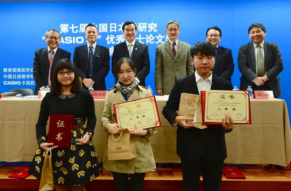 2014年11月6日,由教育部高校外语专业教学指导委员会日语分委员会、中国日语教学研究会、北京日本学研究中心联合主办的“第七届中国日本学研究CASIO杯优秀硕士论文奖颁奖典礼”在北京外国语大学日本学研究中心举行。CASIO杯优秀硕士论文评选每年举办一次,分“语言”、“文学”、“社会文化”三个组,对全国各大院校推选的日语专业硕士论文进行评审。每组各设一、二、三等奖。我院日语系刘珉同学的硕士论文《訓読と翻訳をめぐる空間》(指导教师高宁教授)参加语言组评选,荣获二等奖。该组共有16篇论文入围,其中一等奖1名、二等奖2名、三等奖3名。刘珉同学的此次获奖,也是自2009级研究生周朝伟之后,日语系研究生再次在此项评选中展露实力。(日语系)