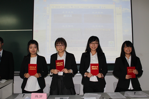 本场比赛由本科生组开场,来自翻译系的正方代表队与来自法语系的反方代表队就“少年应/不应识愁滋味”这一辩题展开了一番唇枪舌战。双方的精彩表现、激昂致辞获得了评委的一致好评。翻译系一辩童晓凡凭借其平稳的表现、有力的发言赢得了最佳辩手的称号。而立论有序、条理清晰的法语系反方代表队最终力挽狂澜,荣获冠军,取得了本场言“外”之意本科生组的最终胜利。