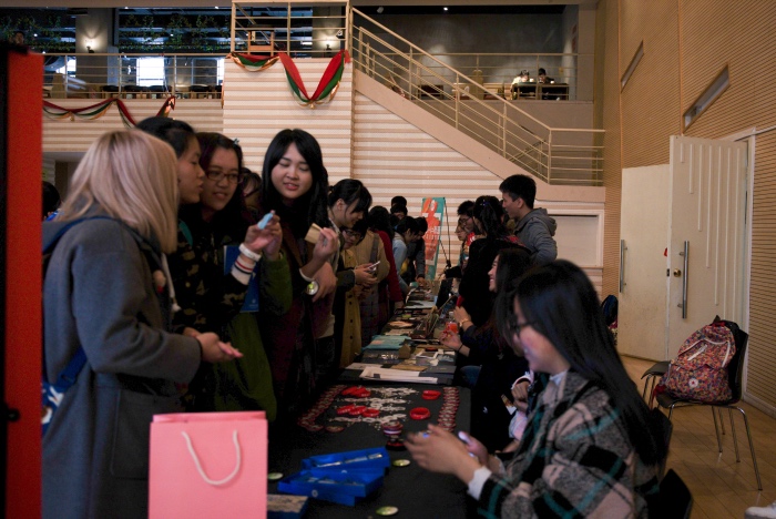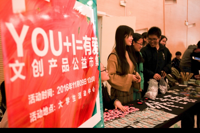 主办的“YOU+I=有爱”创意市集在大学生活动中心C区舞厅举行。本次活动旨在促进院系交流,回忆以往活动的精彩瞬间,自拍流出