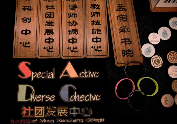 此次市集采用集章的方式调动现场气氛,参观者通过在各个院系摊位参与挑战、得到盖章的方式获得参与社团及非物质文化遗产活动参与的机会。各个学院根据院系特色设置问题,如物理学院根据展品“薛定谔的猫挂件”提问薛定谔的猫的原理,生物学院用脑筋急转弯“大雁南飞需要一个小时,为什么向北飞就需要两个小时”进行考验。通过考验的参与者便可以收集到相应印章,参加多样的现场活动。