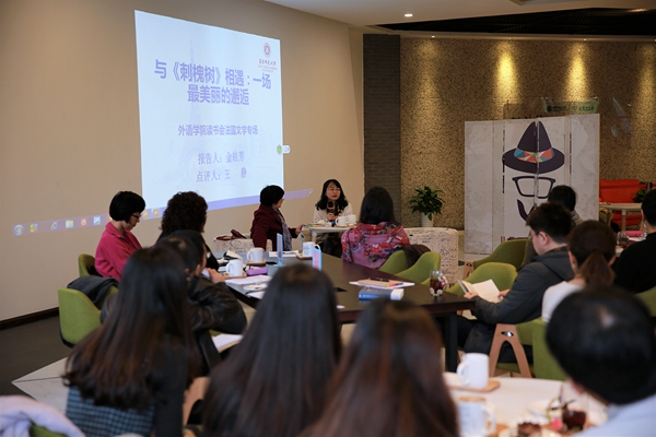 读书会法国文学专场,邀请了今年傅雷翻译出版奖得主、法语系金桔芳博士,请她就获奖作品《刺槐树》分享了翻译与研究体会,并与参加读书会的老师和研究生们展开了热烈的讨论和交流。