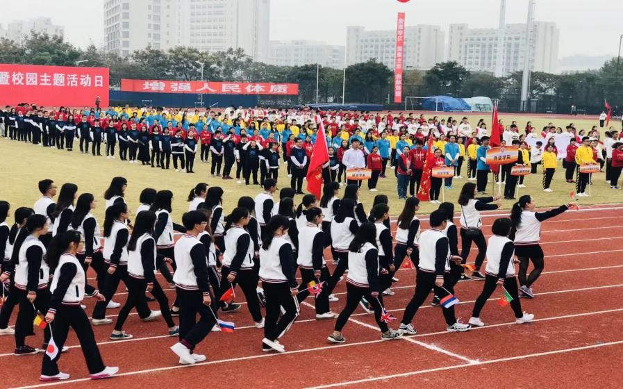 ,学贯中西,放眼世界,敢争第一”的口号,迈着整齐的步伐进入田径场。在队伍行进中,同学们变换队形,组成一个英文字母“w”,代表自拍流出