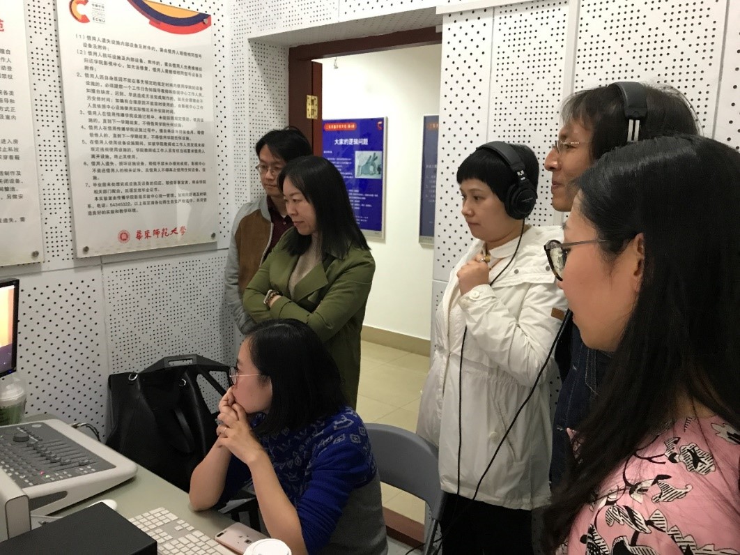 逸夫楼报告厅举行。决赛第一轮中,两支参赛队伍根据领队会上的抽签结果,对同一段消音视频进行现场配音。我院代表队初战告捷,以一段惟妙惟肖的《疯狂动物城》配音战胜了金山区教育工会闯入第二轮比赛。