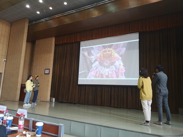 下午一点半,雪后初阳,11支队伍在北外逸夫楼汇聚一堂,为大家带来了风格各异的视频片段,从墨西哥风情的《寻梦环游记》到展现清宫文化的《甄嬛传》选段,从情景喜剧《Aquí no Hay quien Viva》到现实主义题材电视剧《请回答1988》,还有东西方动画选段。这些选段有的带给观众欢声笑语,有的则让大家有笑有泪、陷入沉思。