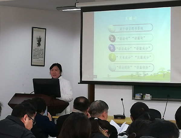 12月7日下午,上海交通大学王振华教授做了题为《现代汉语独词条件复句的功能》的主题报告,从系统功能语言学和修辞学的视角出发,研究了主从分句均为独词句的条件复合句。北京外国语大学何伟教授在《现代汉语助词“了”的功能视角研究》主题报告中,从系统功能语言学视角出发,对“了”字的用法进行了探究,系统地揭示了其语义和句法功能。华中师范大学王勇教授的《领主属宾句的功能分析》主题报告先总结了历来对领主属宾句的研究话题,后对其进行了作格分析,并阐述了其与存在句之间的联系。上海交通大学杨炳钧教授借助汉语语料库BCC中的实际语言事实,利用SPSS软件预测分析中的“自然对数”,得出了“高大上”这一词汇的发展趋势,并分析了词汇演变的机制和原因,做了题为《汉语词汇演变的语法隐喻视角:从“高大上”说起》的主题报告。专家们的报告引发了众多思考,专家和学者们纷纷抛出问题与大家进行了交流。