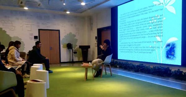 在提问环节,现场同学从如何更好理解蓝花的真正意义,如何比较法国与德国浪漫主义的相似与不同之处,如何看待浪漫主义和古典主义的相融等角度,与姜林静老师进行了沟通交流。