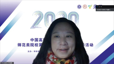 随后来自广东外语外贸大学的吕琳琼副教授以自己的微课竞赛经历为例,从以文化自信为核心的教学理念,到创新创意的教学设计,再到探求学生思维深度发展的教师语言素养三个方面细致地与在线全体师生分享了她所认为的新时代背景下新教师风采的内涵。