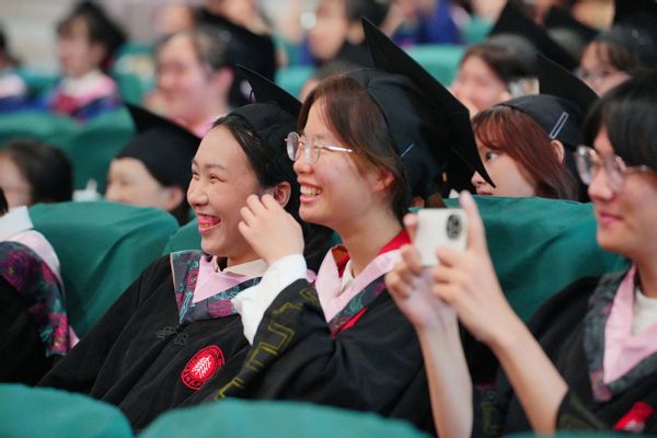 日语系主任尤海燕教授作为教师代表发言,对毕业生表达了热烈的祝贺和深切的期望。尤老师强调了外语学习的重要性及其对于促进人类文明互鉴的作用。“学习外语的意义和目的,就在于互相取长补短,共享人类文明的财富。”她勉励同学们保持好奇心、勇于探索,与世界建立联结,在人类共同价值观里走向宽广和包容。