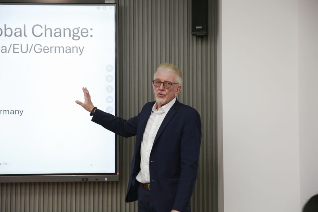 讲座中,Elsner教授以西方学者的独特视角,深入解读中国社会经济发展与政策创新的内在逻辑,剖析中国政治经济体系高效运转的深层原因。同时,他结合当前国际局势,聚焦“俄乌冲突”、“特朗普2.0时代”下中美欧俄四方关系的动态演变,探讨中欧合作的前景与路径。报告以英文进行,为听众提供了跨文化思维碰撞的窗口,也为理解全球化变局下的中欧互动贡献了学术智慧。