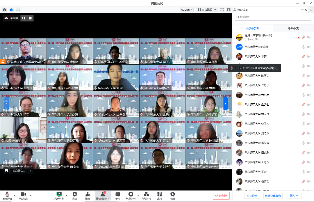 金秋送爽,万里河山披锦绣。上海市法语学子们期盼已久的首届上海市中学·大学多语种联合展示活动(法语专场)于2022年10月19日上午正式拉开帷幕。此次活动为线上线下同时进行,并面向全市所有开设法语课程的中学直播。