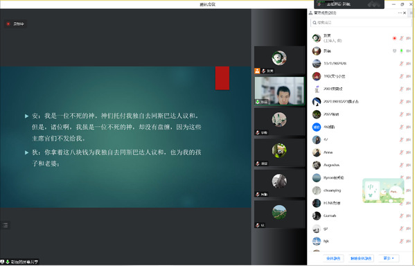 最后,彭磊老师就阿里斯托芬谐剧与古希腊肃剧的关系、私人的快乐、正义与理想国的关系、诸神是否关心人类、战争起因等问题和参与者进行了探讨。