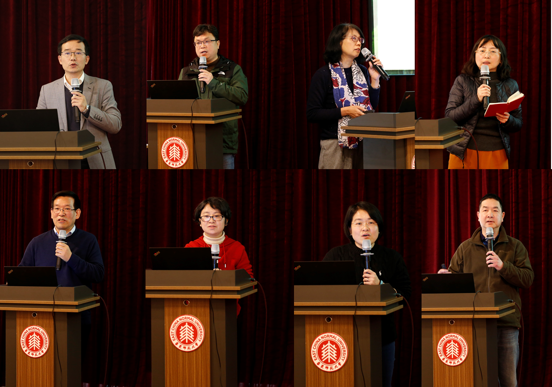 英语系主任陈俊松、翻译系主任赵刚、日语系主任尤海燕、法语系主任金桔芳、俄语系主任胡学星、德语系主任冯晓春、西班牙语教研室主任徐玲玲、大学英语教学部主任严文庆分别围绕三大主题进行报告
