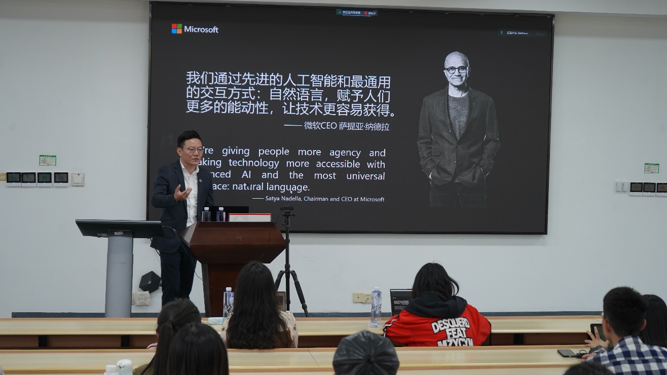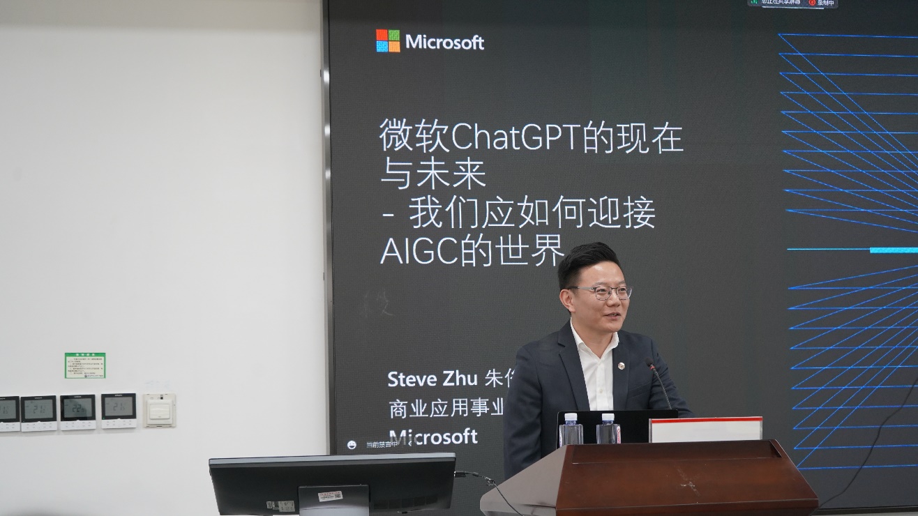 科创中心与丽娃译社共同主办的“语言学习的AI革命:ChatGPT在外语学科中的潜能与趋势”系列活动的第二场讲座圆满举行。本次讲座特邀我校2007届德语系校友,现任微软中国商业应用解决方案事业部中国区销售总监的朱俊,为大家解读在以ChatGPT的兴盛为代表的AI时代,语言专业学生如何积极地面对并使用相关技术。