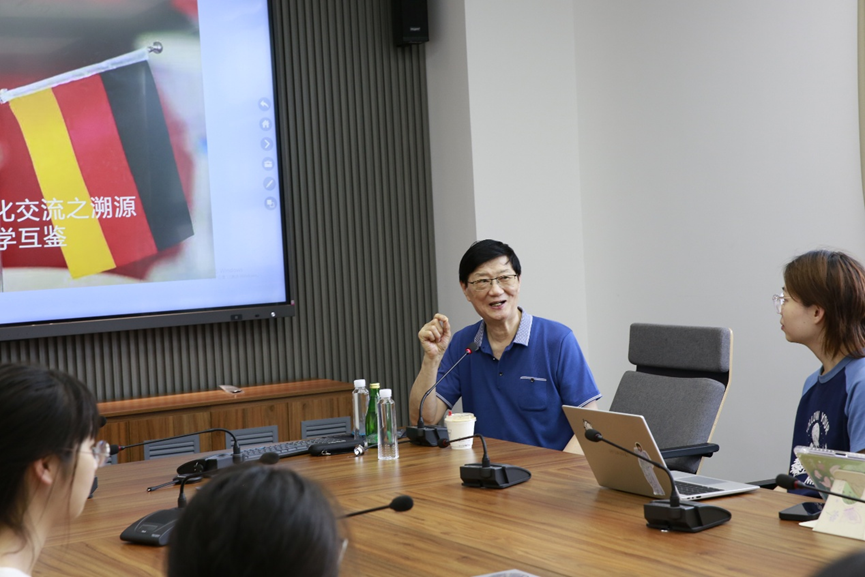访问,并为师生做了题为“中德两国文化交流之溯源及互学互鉴”的讲座。该讲座由德语系樊荣老师主持,来自德语、英语系的学生聆听了报告。