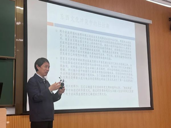 法语一流专业建设高端系列讲座第三讲在闵行校区二教205举办,本期讲座邀请到上海大学特聘教授、全国优秀教师、教育部高等学校外语专业教学指导委员会委员、法语分委员会副主任委员、法国金棕榈教育勋章军官勋位获得者户思社教授,进行了题为《东西文化冲突中的身份困顿与错位》的学术讲座。本场讲座由法语系主任金桔芳主持。